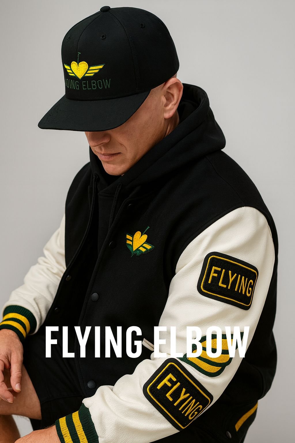 Flying Elbow 110 Tour Pro Hat $49.00 Flying Elbow Neck Ties $49.00 Varsity Jacket $499.00 Polo $199.00 T-Shirt $40.00 Hoodie $299.00